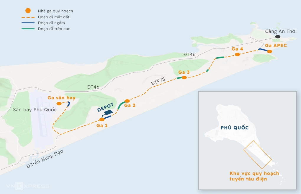총 18km 구간으로 설계된 노선은 푸꾸옥 국제공항에서 APEC 컨퍼런스센터까지 이어지며, 이 중 1.3km는 고가, 14.3km는 지상, 2km는 지하 구간으로 구성된다.